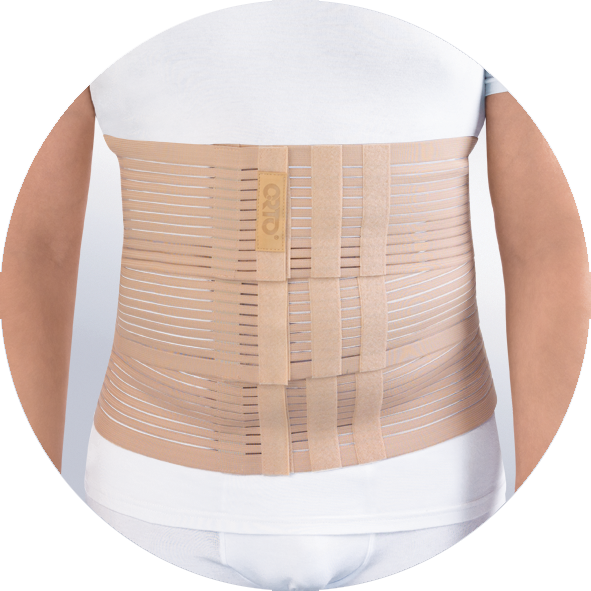 - конструкция изделия дублирует мышцы живота, укрепляет переднюю брюшную стенку над местами ослаблений и послеоперационных повреждений, при этом, не затрудняет дыхание