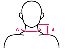 - Измерения производить в области основания окружности шеи (A).