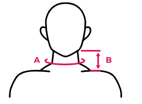- Измерения производить от угла нижней челюсти до середины ключицы (B).