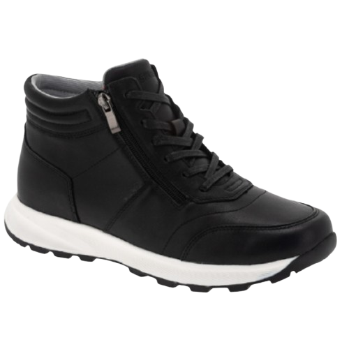 Ортопедические ботинки для профилактики и коррекции плоскостопия. Высокие ботинки выполнены в спортивном стиле, подойдут для прохладной погоды. Плотный формоустойчивый задник фиксирует пятку, обеспечивая физиологичное положение стопы и устойчивую походку. Модель выполнена из натуральной кожи. Внутренняя подкладка из текстиля и мягкий кант сзади защищают от натирания. Эластичная легкая подошва из резины гасит ударные нагрузки и создает комфорт движения. Выраженный протектор подошвы обеспечивает безопасность ходьбы. Шнуровка позволяет корректно отрегулировать посадку обуви по подъему стопы. Дополнительно модель оснащена боковыми молниями вдоль шнуровки для упрощения надевания.