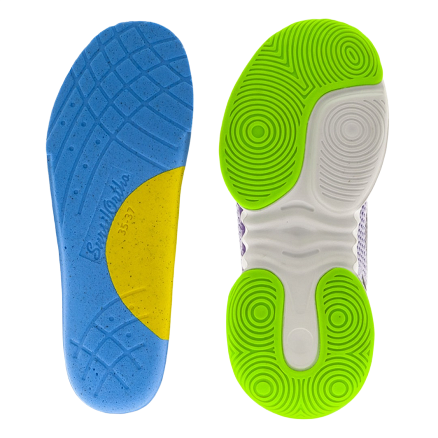 Легкие стильные кроссовки для детей и подростков для профилактики и коррекции плоскостопия. Особенность модели — инновационная система шнуровки с клипсой (боа) для быстроты и удобства надевания. Верх модели и внутренняя подкладка выполнены из дышащего текстиля. Формоустойчивый задник удерживает пятку в нейтральном положении, предотвращая завал стопы. Съемная анатомическая стелька мягко поддерживает своды и разгружает стопу. Легкая амортизирующая подошва с резиновыми антискользящими вставками эффективно распределяет нагрузку по стопе, предотвращая усталость.