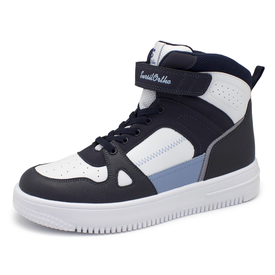 Ортопедические подростковые высокие кеды для профилактики и коррекции плоскостопии. Элегантная модель в трендовом стиле сочетается с разными образами. Обувь подходит для школы, для занятий спортом и для длительных прогулок в городе. Формоустойчивый задник удерживает пятку в нейтральном положении, помогая сформировать правильную биомеханику стоп. Съемная анатомическая стелька для поддержки детской стопы. Верхняя часть обуви выполнена в сочетании из натуральной кожи и дышащего текстиля. Для защиты от натирания в обуви текстильная подкладка и мягкий кант сзади. Пластичность и легкость подошвы из материала ЭВА обеспечивает естественную работу мышц стопы и способствует комфорту при длительной ходьбе. Шнуровка и липучка Велкро позволяют корректно отрегулировать обувь по стопе.