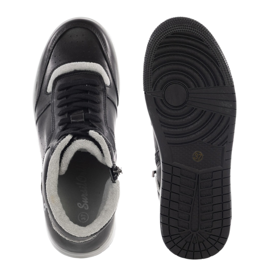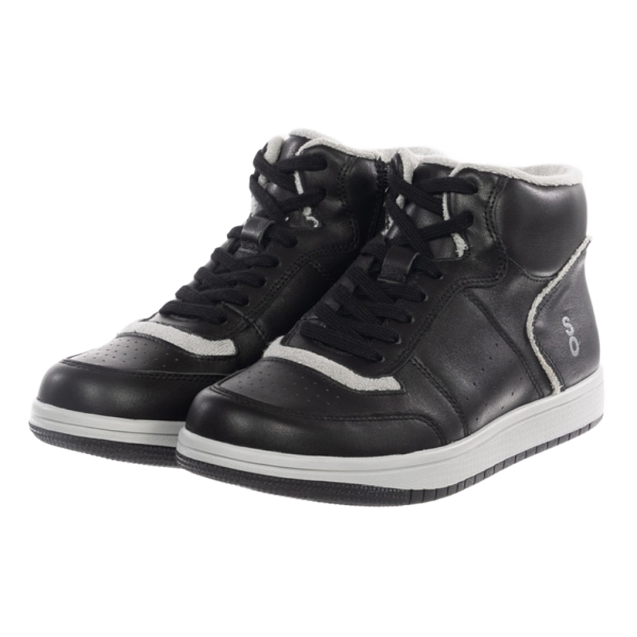 Демисезонные ортопедические ботинки для профилактики плоскостопия. Ботинки выполнены из натуральной кожи и отлично подойдут для переменчивой погоды. Модель по мотивам знаменитых Air Force - это технологичная комбинация комфорта, стиля и мягкой поддержки ваших стоп. Формоустойчивый задник обуви фиксирует пятку и предотвращает заваливание стопы. Модель имеет вкладную ортопедическую стельку для разгрузки стопы. Подошва из износоустойчивой резины защищает стопу от ударной волны при ходьбе. Ботинки выполнены из черной натуральной кожи, внутри дышащая текстильная подкладка. Область голеностопа в обуви оснащена мягкой вставкой, которая исключает натирание. Шнуровка в сочетании с молний сбоку позволяют быстро снимать и надевать обувь.