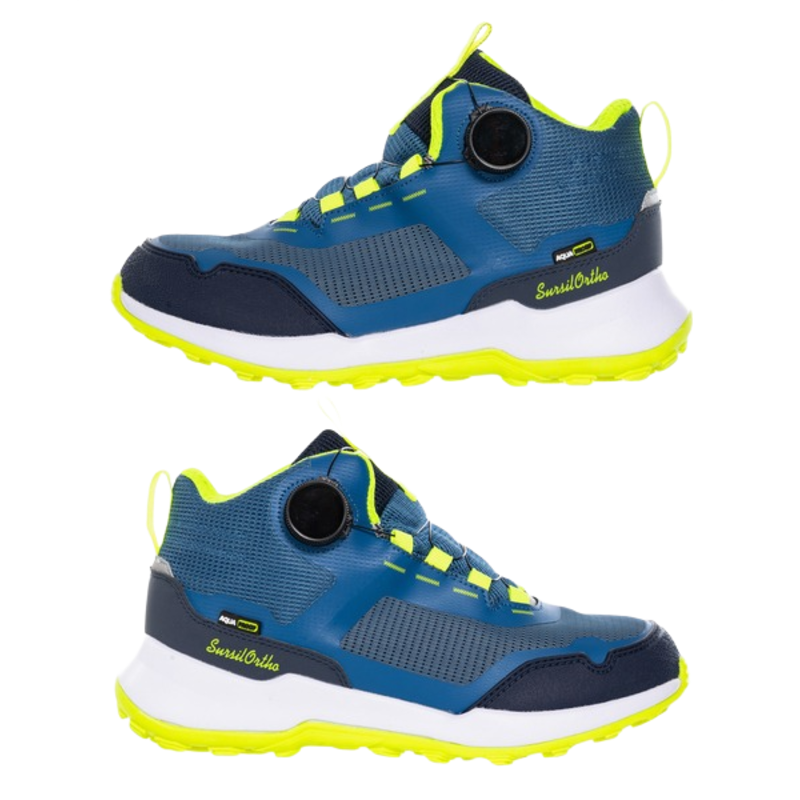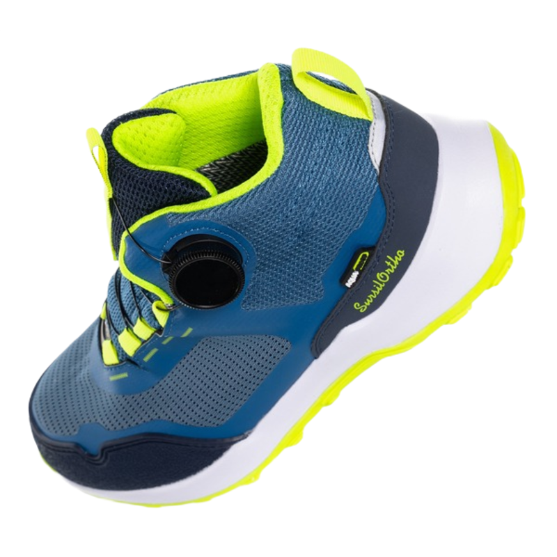 Функциональные высокие ортопедические кроссовки отлично подойдут для активных прогулок на осень или весну. Инновационный материал верха с мембраной SURSIL TEX обеспечивает циркуляцию воздуха и при этом обладает водоотталкивающими свойствами. Мысочная часть защищена плотной накладкой из прорезиненного материала. В кроссовках применена инновационная шнуровочная система с клипсой, что очень удобно для быстрой и корректной фиксации обуви на ноге. Плотный формоустойчивый задник предохраняет стопу от завала. Анатомическая стелька из пенополиуретана имеет пяточный амортизатор и сформированный супинатор для поддержки стопы в физиологически правильном состоянии. Легкая подошва с антискользящим протектором поглощает ударные вибрации и распределяет нагрузку по стопе. Кроссовки рекомендуются для профилатики и коррекции плоскостопия.