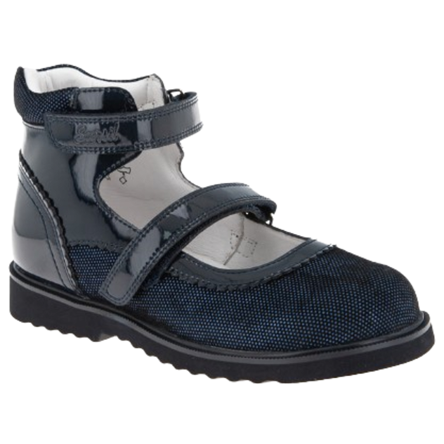 Ортопедические стабилизирующие туфли для девочек. Рекомендуются при плоскостопии, плоско-вальгусной деформации стопы, неврологических нарушений, церебральном параличе. Конструкция обуви с жестким задником и продленными берцами стабилизирует задний отдел стопы в анатомически правильном положении, формируя естественную биомеханику шага. Продленный каблук Томаса с внутренней стороны предупреждает заваливание стопы внутрь. Верх и подкладка модели изготовлены из натуральной кожи. Для смягчения давления и профилактики натирания голени верх задника оснащен мягкой вставкой. Липучки Велкро для удобства надевания обуви ребенком. Легкая, износостойкая подошва ЭВА. Обувь зарегистрирована в Росздравнадзоре как мед. изделие.