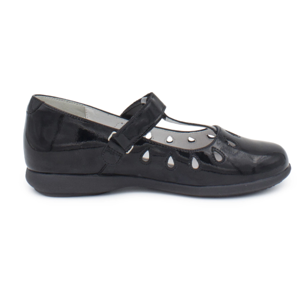 Ортопедические туфли для профилактики плоскостопия и плоско-вальгусной установки стоп.Утонченная модель выполнена из натуральной кожи в черном цвете, отлично подойдет для учебы и прогулок в теплую погоду.