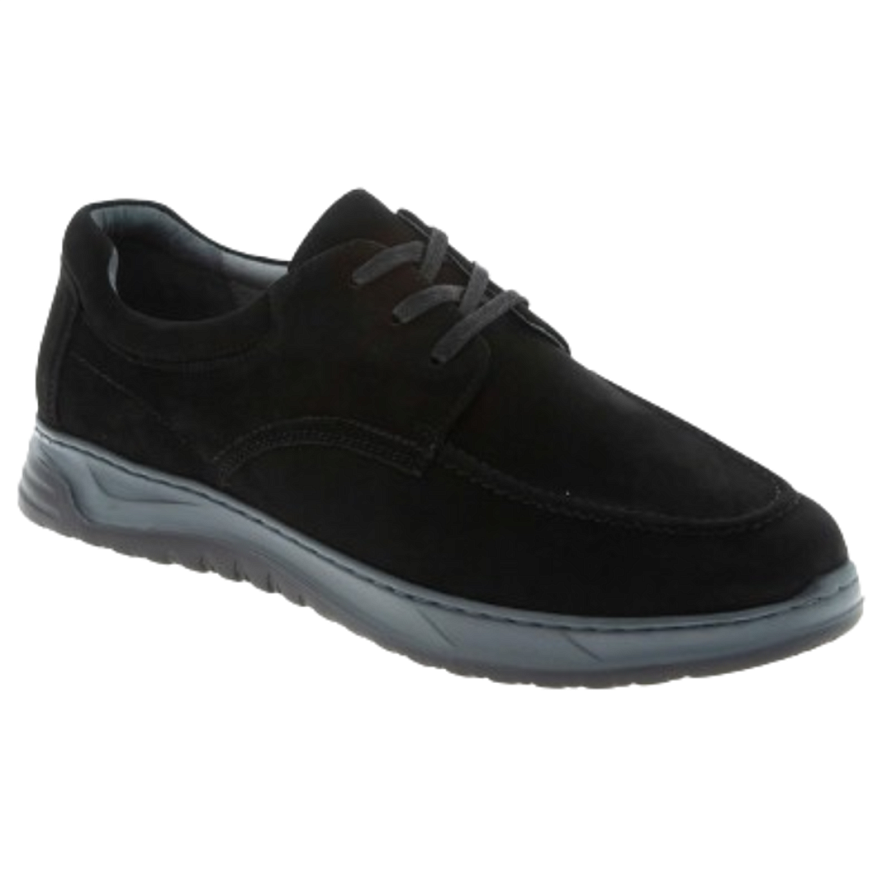 Ортопедические полуботинки мужские для профилактики плоскостопия. Стильные полуботинки подходят для прогулок по городу в прохладную погоду. Формоустойчивый задник фиксирует пятку, ставит физиологически нейтральное положение, формирует естественную биомеханику стопы. Верх модели выполнен из натурального нубука. Для защиты от натирания кожаная внутренняя подкладка и мягкий кант сзади. Съемная ортопедическая стелька, можно заменить на стельку индивидуального изготовления. Шнуровка позволяет корректно отрегулировать посадку обуви по подъему стопы. Эластичная, износостойкая подошва из резины поглощает ударную нагрузку.