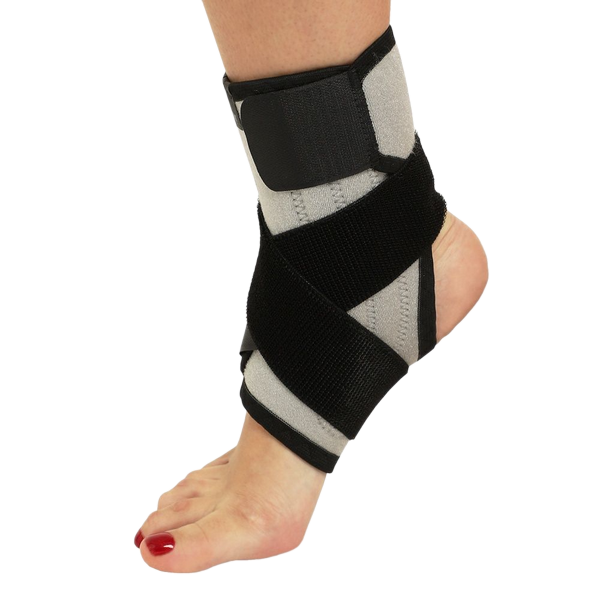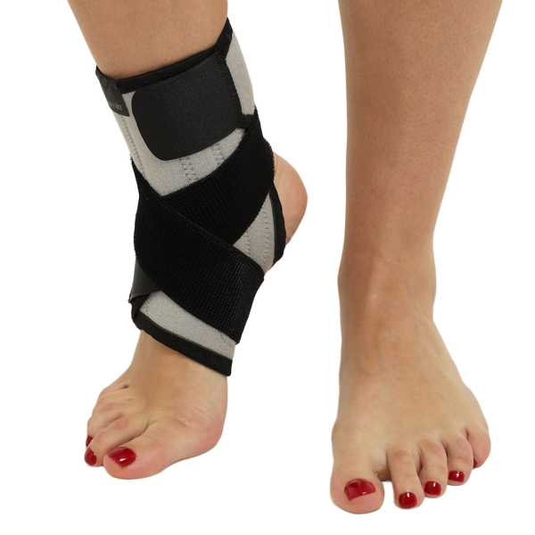 - Нижнюю часть бандажа с эластичной лентой оберните вокруг стопы в виде "восьмерки" и зафиксируйте на застежку-липучку (лентой Velcro)