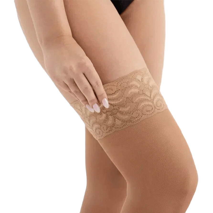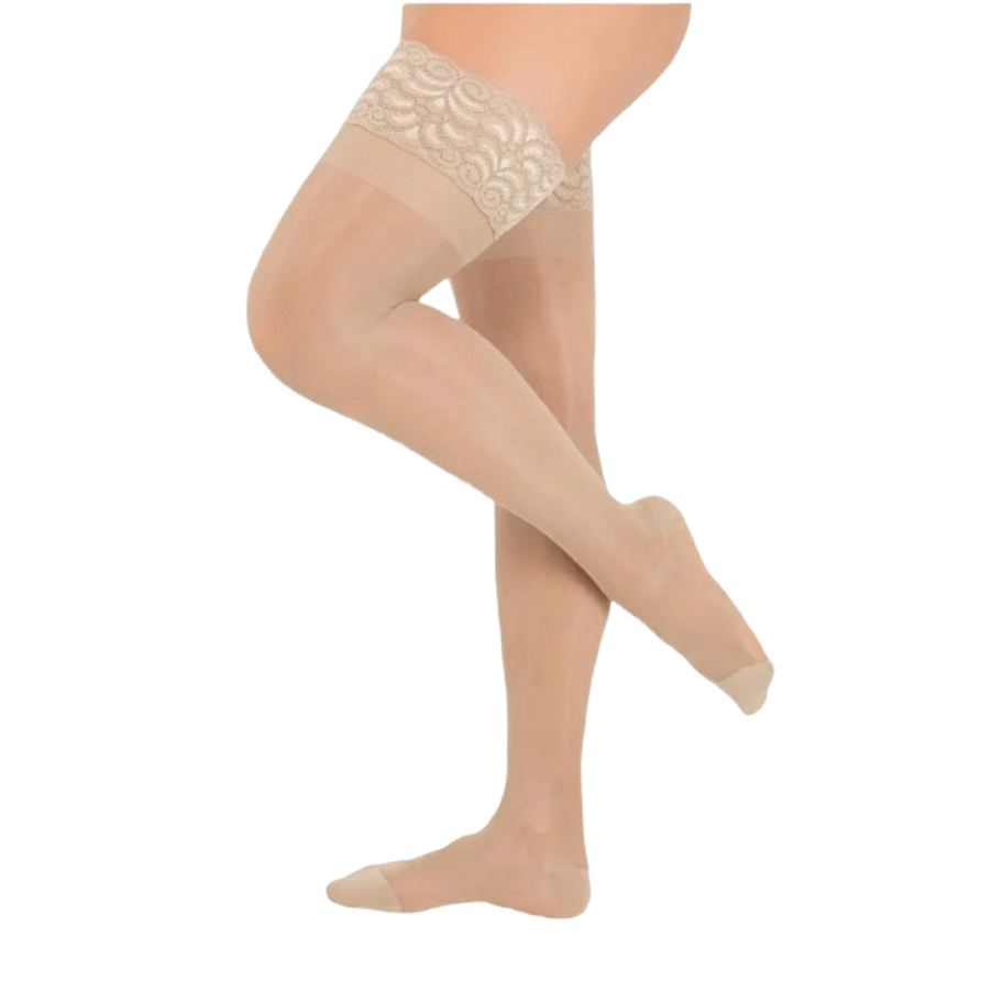Компрессионные чулки 1 класс компрессии VENOTEKS Trend 1C200 прозрачные незаменимы при начальных стадиях хронической венозной недостаточности. Компрессионные чулки для женщин снимают усталость и тяжесть в ногах, уменьшают отеки, предотвращают прогрессирование варикозной болезни и развитие ее осложнений. Изготовлены из современных гипоаллергенных и безопасных материалов, имеют привлекательный внешний вид и легкую парфюмированную отдушку. Мягкие, шелковистые, элегантные и удобные в использовании.