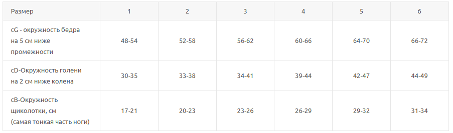 - подобрать изделия по размеру (см. таблицу подбора типоразмеров на длину ноги от 65 см до 74 см)