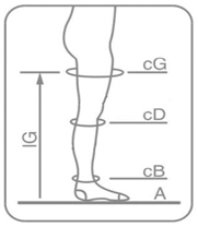 При измерении обхвата голени, лента должна проходить на 2 см ниже коленной чашечки. Держите ленту строго горизонтально.