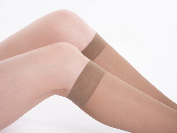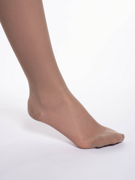 - Надеть изделие на стопу, убедиться, что пятка чулка правильно расположена на ноге.
