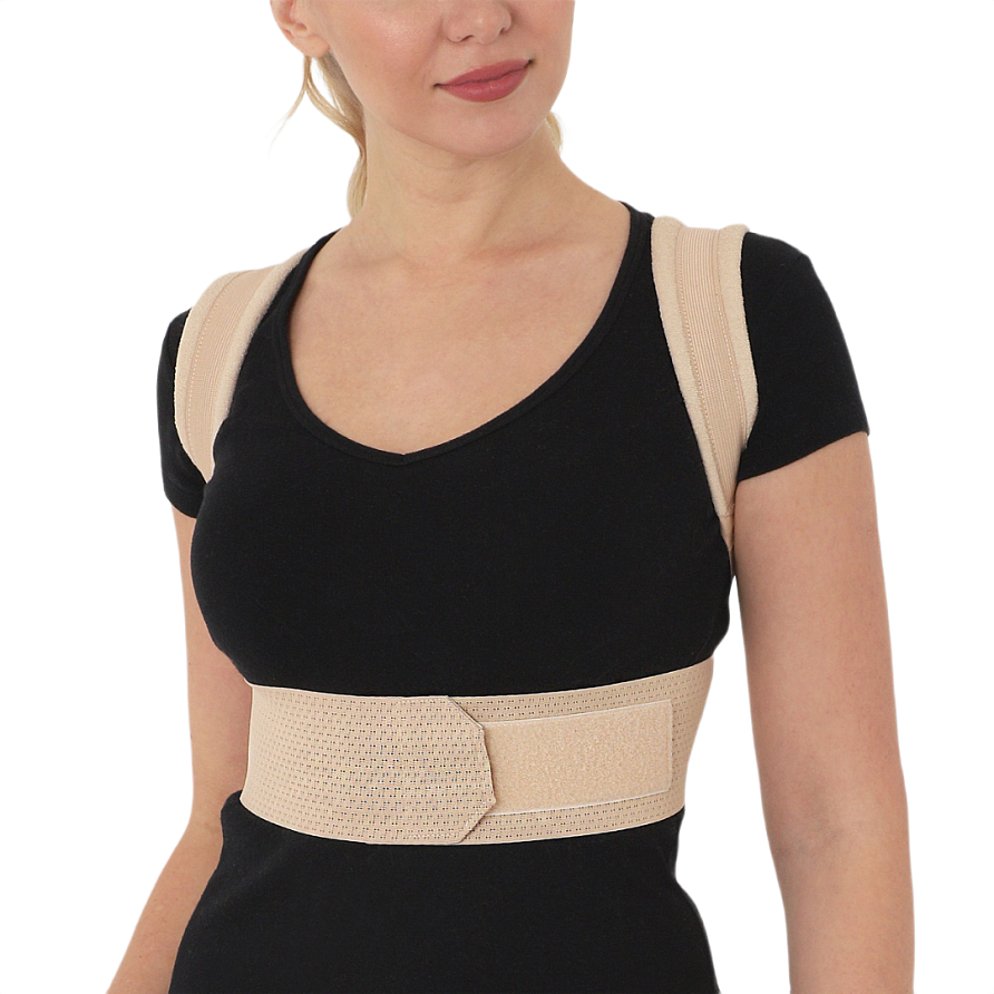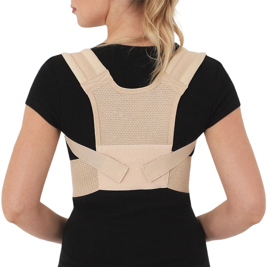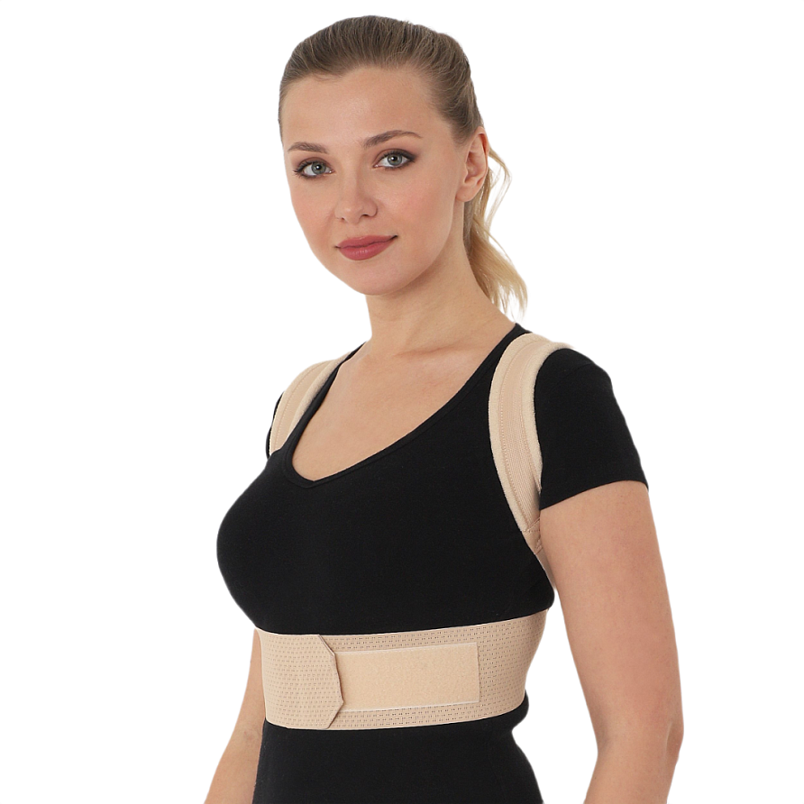 - Легкий корректор осанки из перфорированного воздухопроницаемого материала практически незаметен под любой одеждой