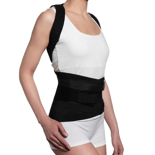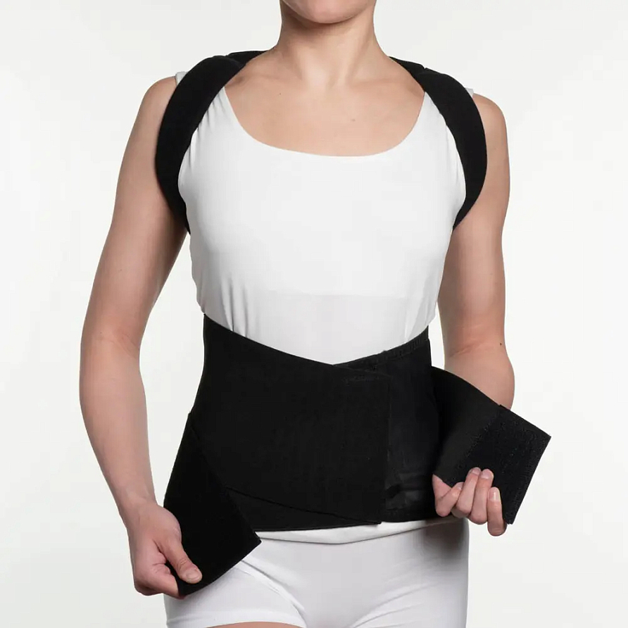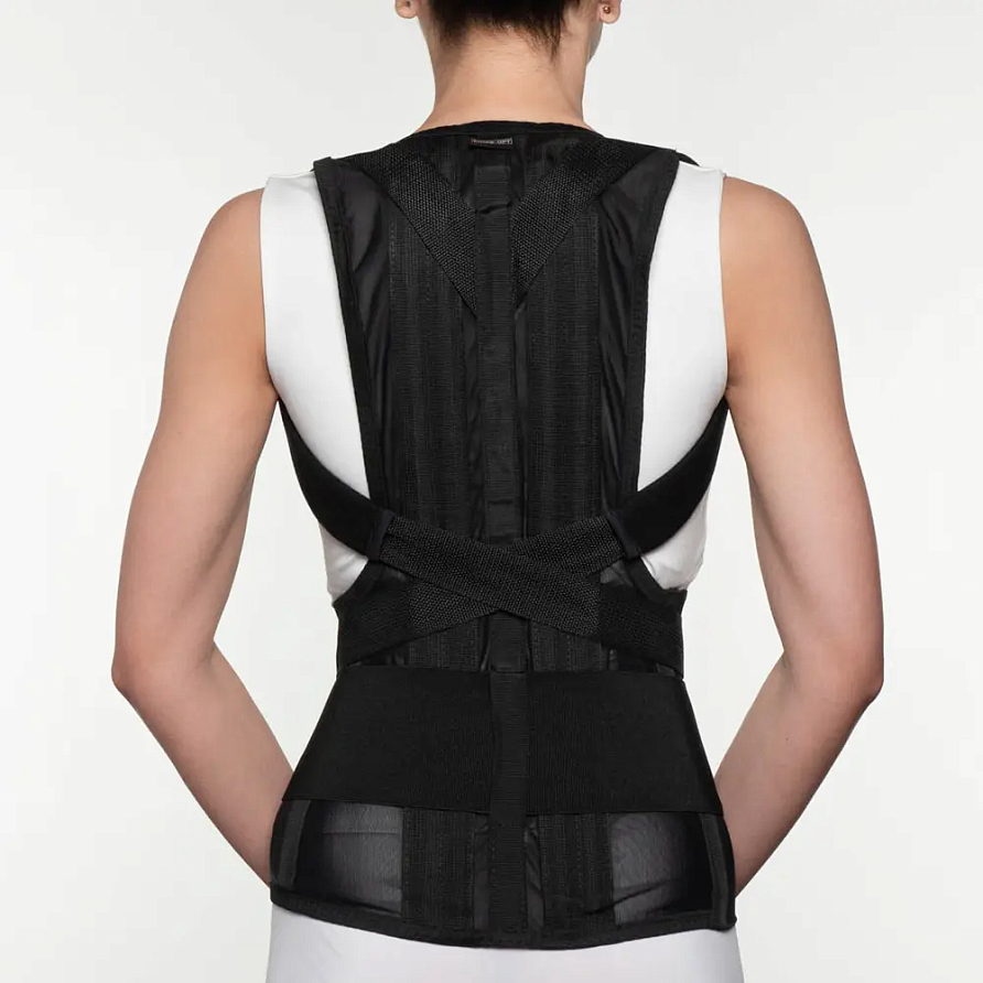 Ленты стяжки из медицинского эластика обеспечивают более жесткую фиксацию, учитывая анатомические особенности тела пациента. Разведение надплечий осуществляется при помощи неэластичных лент, и фиксируются в области передней брюшной стенки при помощи застежки «Велкро». Предназначен для жесткой фиксации грудного и поясничного отделов позвоночника. В изделии также предусмотрена регулировка величины разведения надплечий.