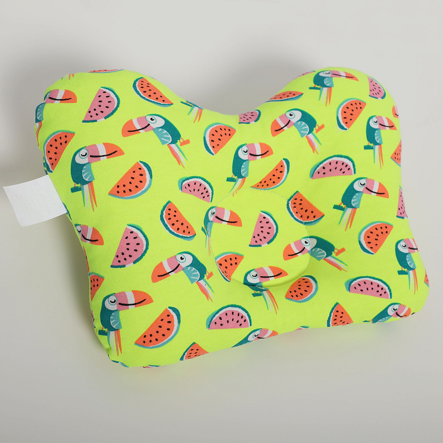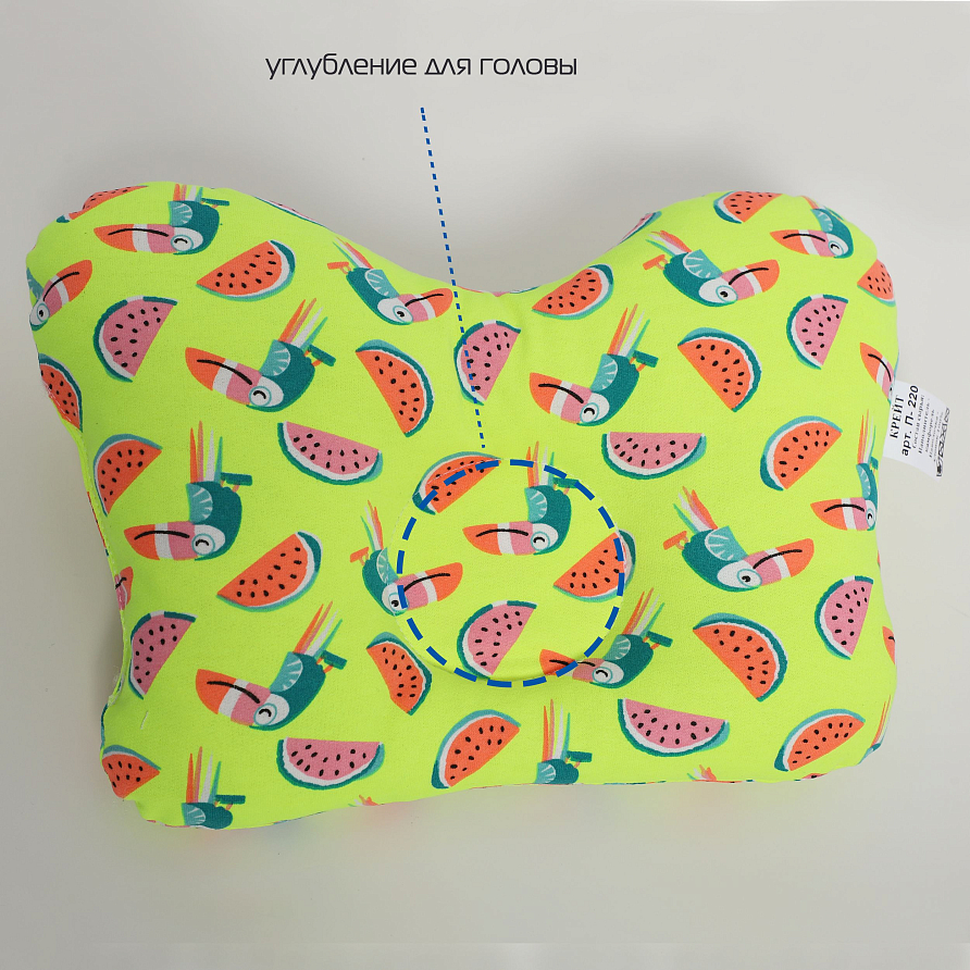 - Валикообразные края и центральное углубление позволяют правильно разместить головку малыша на подушке