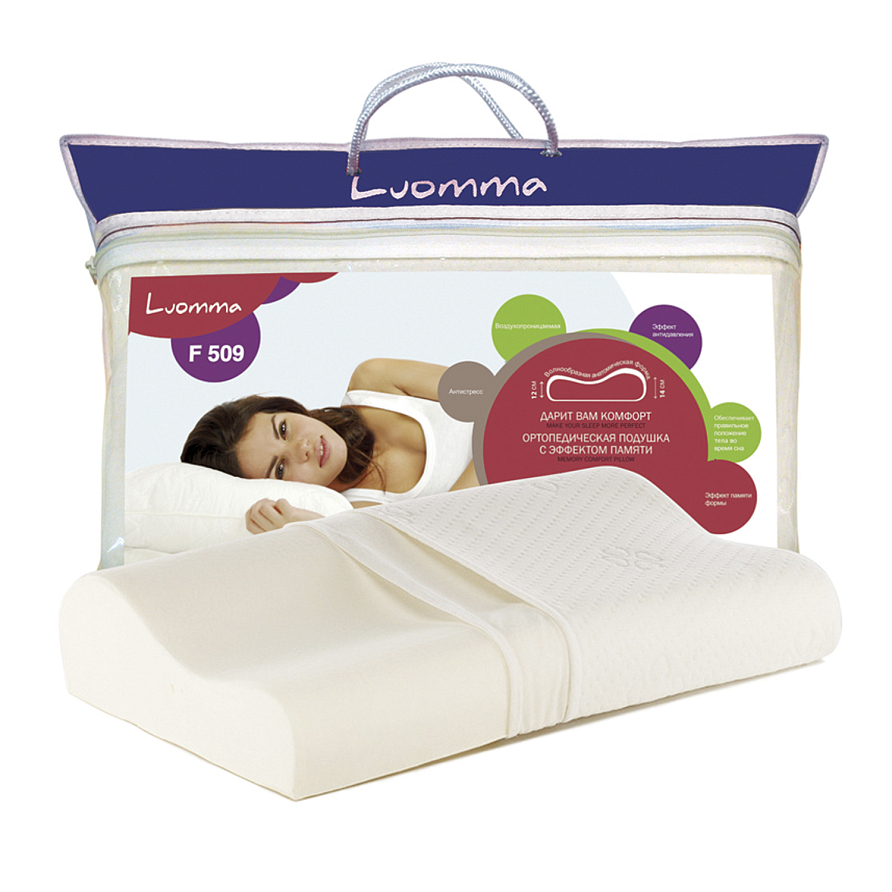 - изготовлена из специального вязко эластичного материала, который под воздействием температуры тела запоминает и держит форму, фиксируя правильное положение головы и шеи во время сна и отдыха;