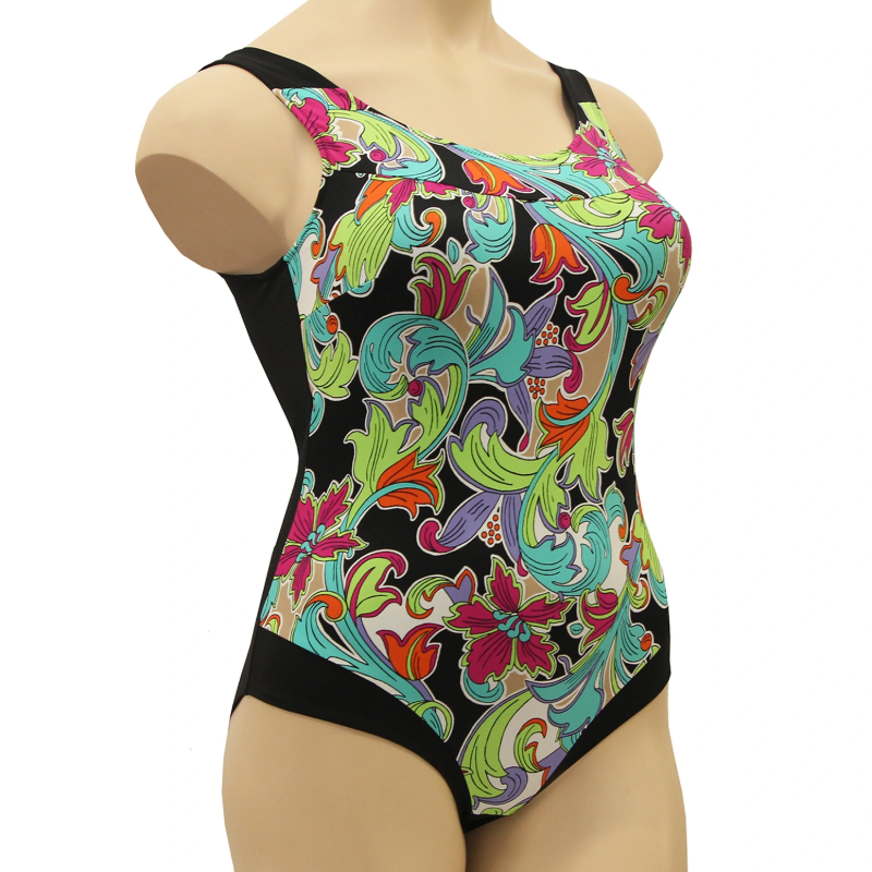 Купальник К0792-1Ч П182 Цветной орнамент на черном