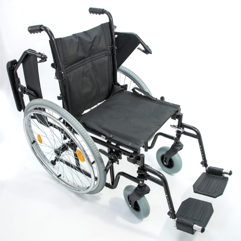Кресло-коляска инвалидная с ручным приводом предназначена для передвижения больных и инвалидов с частичной потерей функций опорно-двигательного аппарата в помещениях и на твёрдых покрытиях, как самостоятельно, так и с помощью сопровождающего лица. Кресло-коляска имеет складную поршневую конструкцию по вертикальной оси. Рама выполнена из стали с полимерным покрытием. Складная конструкция позволяет удобно хранить и транспортировать коляску.Особенности