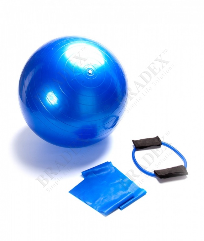 В набор для фитнеса входят мяч (55 см), эластичный бинт и экспандер (70 см). Тренировок с использованием этих трех предметов достаточно, чтобы вернуть себе стройность, подтянуть мышцы и предупредить развитие многих болезней.