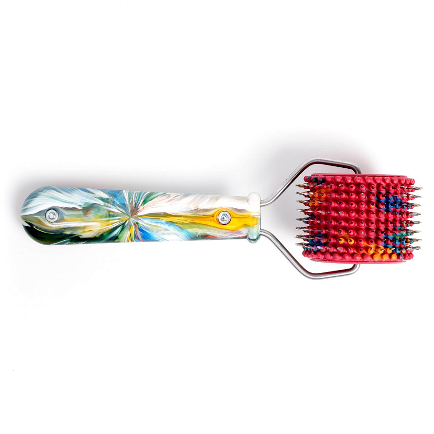Разработан специально для воздействия на лицо и зону волосистой части головы. Также дает возможность обрабатывать практически любые участки тела (зоны мелких суставов конечностей, кисти и стопы), для снятия болей и спазмов. Рекомендован для применения в косметологии и для точной рефлекторной диагностики. Терапевтический эффект достигается в несколько раз быстрее, чем при применении статического аппликационного устройства. Гальванический ток, возникающий в коже, на остриях и между иглами, носит импульсный характер. Благодаря гибким боковым резиновым втулкам оказывается более мягкое, деликатное воздействие на кожу.