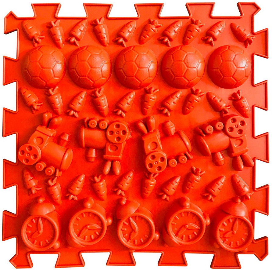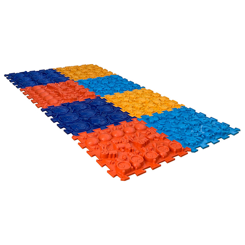 Коврики представляют собой отдельные модули, которые соединяются между собой по принципу «пазл». Они имеют различную фактуру и жесткость поверхности, поэтому во время занятий на ковриках ОРТО ПАЗЛ стимулируются все необходимые рецепторы стопы малыша, способствуя формированию ее физиологических сводов.
