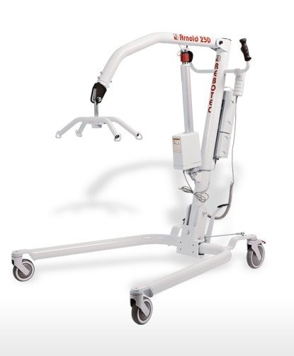 Подъемник электрический Rebotec Арнольд 250. Предназначен для поднятия и перемещения лежачих больных с кровати, с кресла, для приема ванной и т.д.