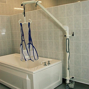 - подъемник оснащен специальной универсальной подвеской, пригодной как для стандартного использования, так и использования в воде. В зависимости от заболевания для пользователей подбираются индивидуальные подвески (с подголовником при повреждении шейных отделов позвоночника и др)