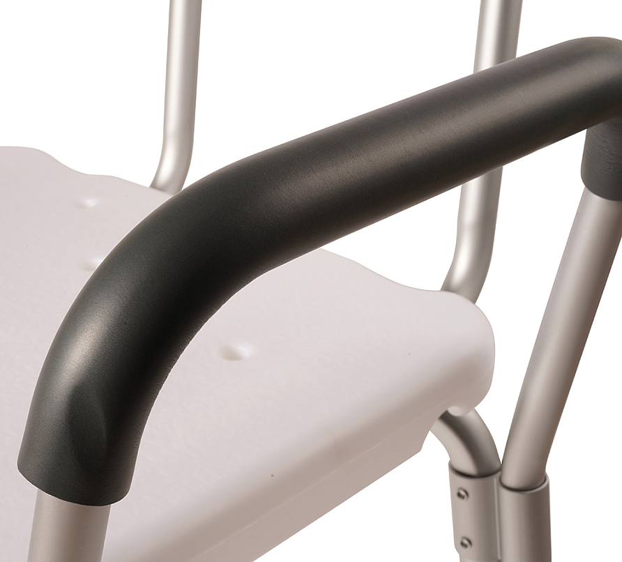 Собирать и разбирать изделие можно без использования инструментов. Высокие мягкие поручни облегчают эксплуатацию и предотвращают появление травм. Спинка из гигиенического ударопрочного пластика повысит уровень комфорта при использовании изделия.