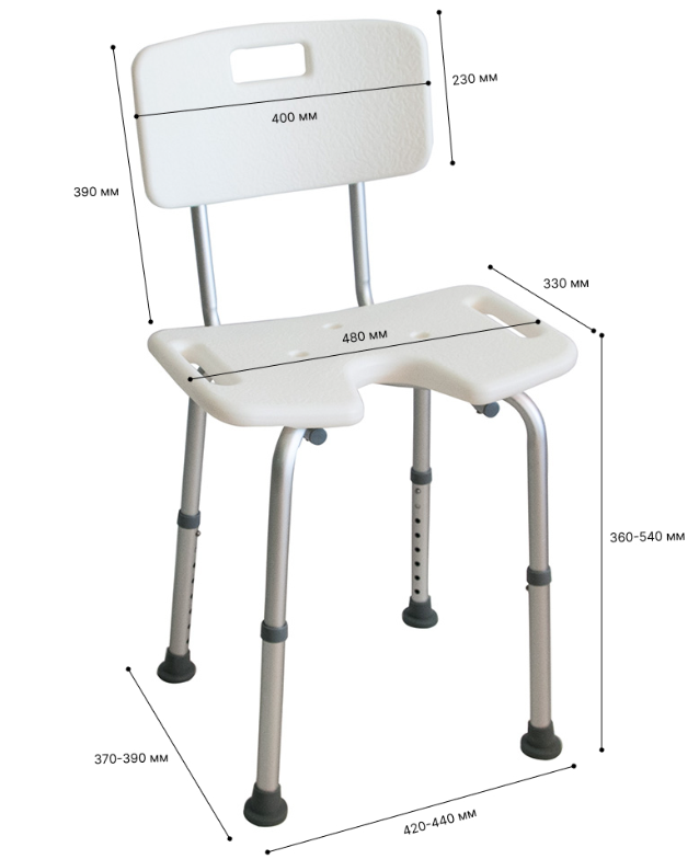 Стул для ванной комнаты используется при уходе за больными в лечебном стационаре или домашних условиях. Стулом удобно пользоваться в самой ванной комнате или ставить в душевую кабину. Стул регулируется по высоте, имеет 8 положений регулировки высоты с шагом в 2,5 см.