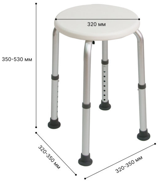 Стул для ванной комнаты используется при уходе за больными в лечебном стационаре или домашних условиях. Имеет 8 ступеней регулировки высоты с интервалом в 2,5 см. Легкая конструкция из анодированного алюминия не подвергается коррозии, сиденье выполнено из высокопрочного пластика. Стул устойчив и не скользит по полу благодаря противоскользящим наконечникам наконечникам.