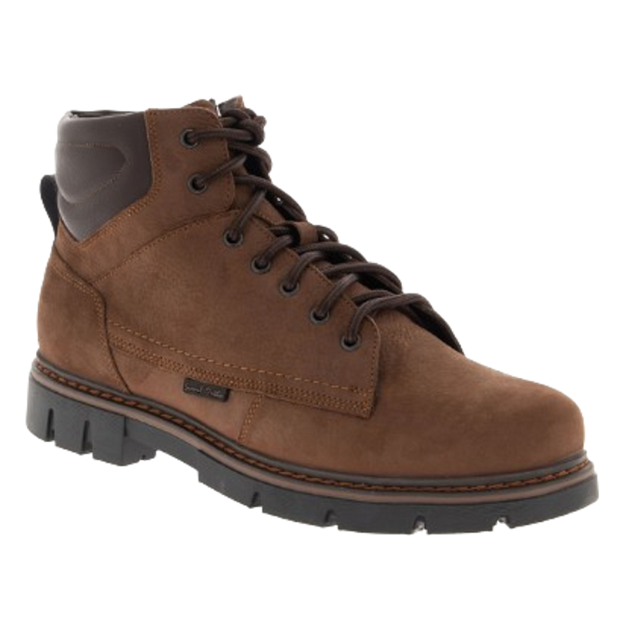 Ортопедические ботинки мужские для профилактики плоскостопии. Обувь рекомендована для профилактики болезней ног (плоскостопие, плоско-вальгусные стопы, пяточные шпоры, натоптыши и болезненные «косточки»). Зимняя модель с натуральной шерстью подойдет для долгих прогулок в холодную погоду. Верх обуви выполнен из натурального нубука. Конструкция модели с формоустойчивым задником фиксирует пятку, убирает избыточную подвижность и формирует правильную биомеханику стопы. Обувь оснащена съемной анатомической стелькой с супинатором и покрытием из натуральной шерсти. Эргономичная колодка обеспечивает свободу переднего отдела. Эластичная, износостойкая подошва ТЭП с нескользящим протектором поглощает ударные нагрузки. Шнуровка позволяет корректно отрегулировать посадку обуви по подъему стопы. Дополнительно модель оснащена боковой молнией для упрощения надевания.