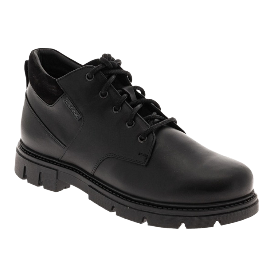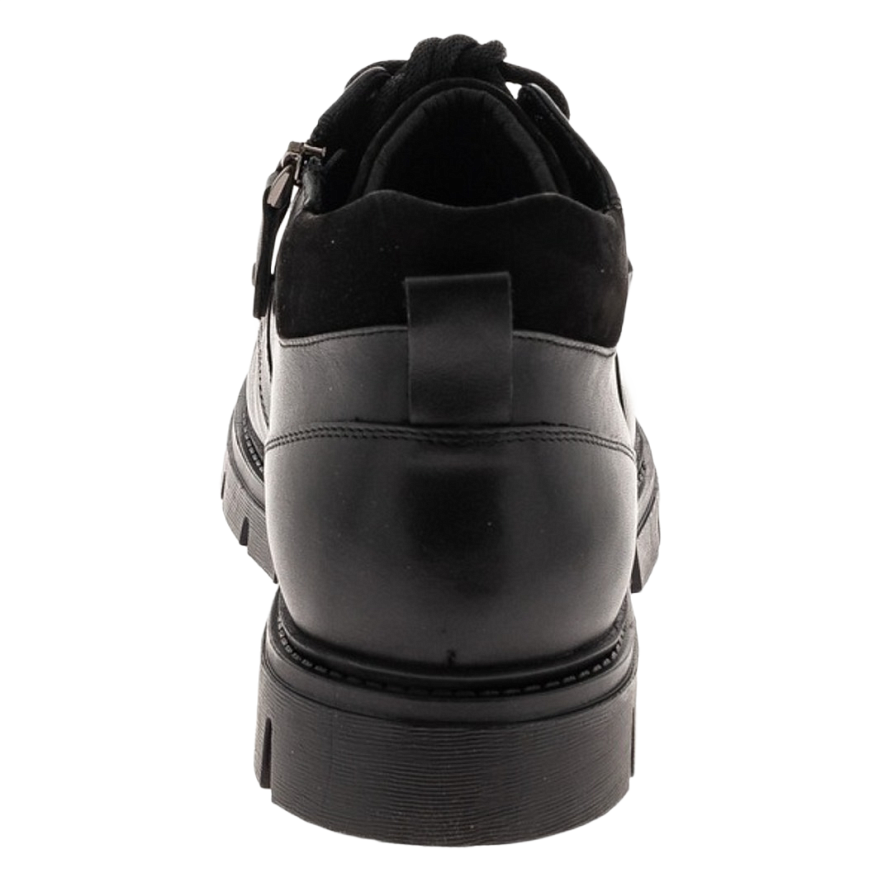 Ортопедические ботинки мужские предназначены для профилактики плоскостопия и других заболеваний стоп (плоско-вальгусные стопы, пяточные шпоры, натоптыши и болезненные «косточки»). Зимняя модель с натуральной шерстью подходит для долгих прогулок в холодную погоду. Верх обуви выполнен из натуральной кожи. Конструкция с формоустойчивым задником фиксирует пятку, убирает избыточную подвижность и формирует правильную биомеханику стопы.