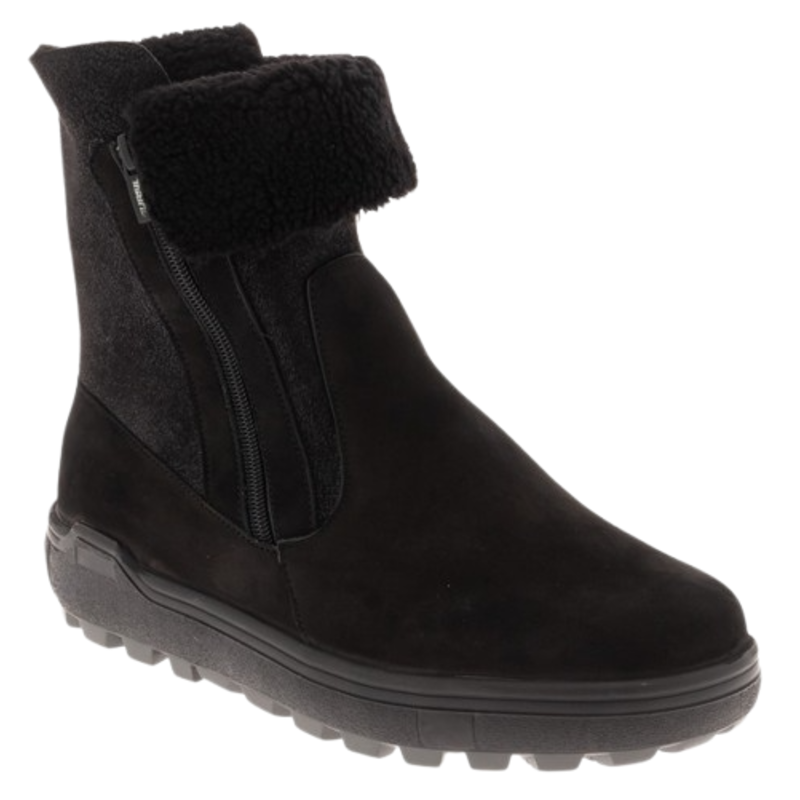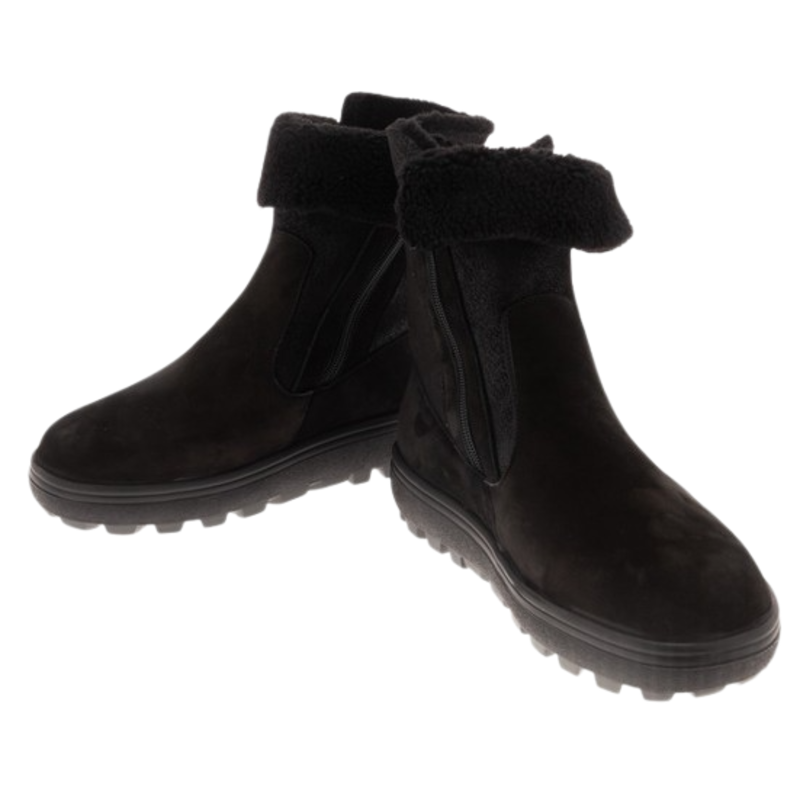 Ортопедические полусапожки женские для профилактики плоскостопии. Обувь рекомендована для профилактики болезней ног (плоскостопие, плоско-вальгусные стопы, пяточные шпоры, натоптыши и болезненные «косточки»). Зимняя модель с натуральной шерстью подойдет для долгих прогулок в холодную погоду. Верх обуви выполнен из натурального нубука. Конструкция модели с формоустойчивым задником фиксирует пятку, убирает избыточную подвижность и формирует правильную биомеханику стопы. Модель оснащена съемной анатомической стелькой с супинатором и покрытием из натуральной шерсти. Эргономичная колодка обеспечивает свободу переднего отдела. Эластичная, износостойкая подошва ТЭП с нескользящим протектором поглощает ударные нагрузки. Молнии по бокам обуви для упрощения надевания.