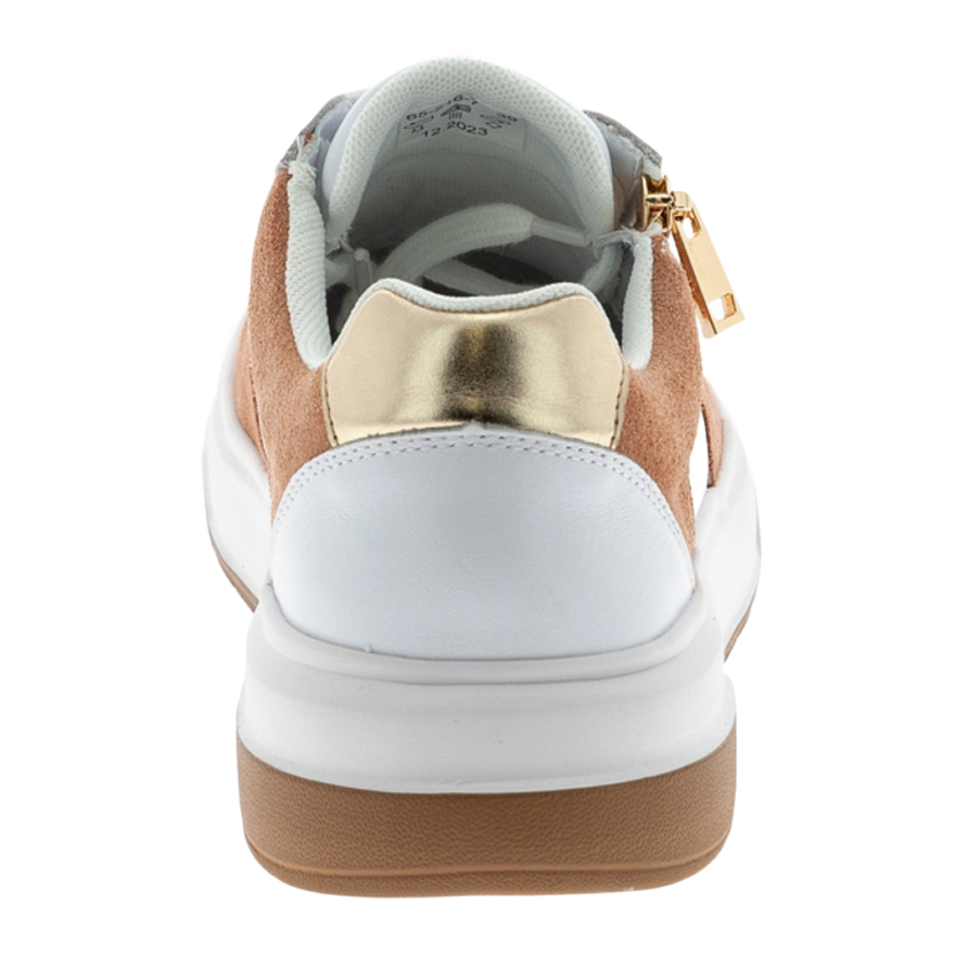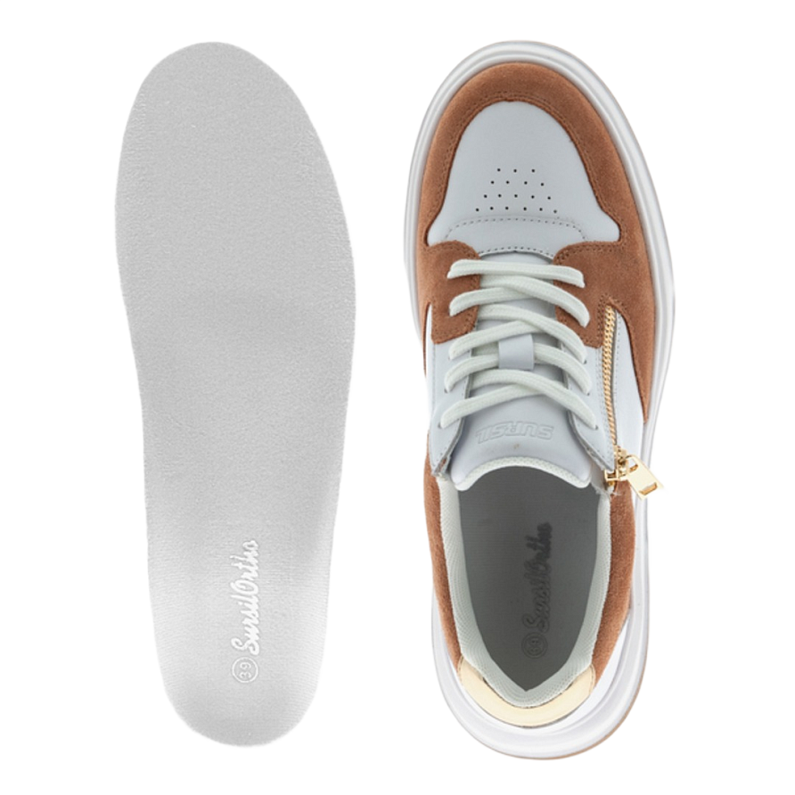 Ортопедические кроссовки для женщин для профилактики развития плоскостопия. Модель современного спортивного дизайна выполнена из натуральной кожи. Прекрасно подойдет для спорта и путешествий в прохладную погоду. Формоустойчивый задник удерживает пятку в нейтральном положении, помогая сформировать правильную биомеханику стоп. Вкладная анатомическая стелька дарит дополнительный комфорт. Текстильная подкладка исключает возникновение мозолей. Амортизирующая подошва из резины поглощает ударную вибрацию. Шнуровка и молния сбоку дают возможность легко надеть и отрегулировать обувь по стопе.