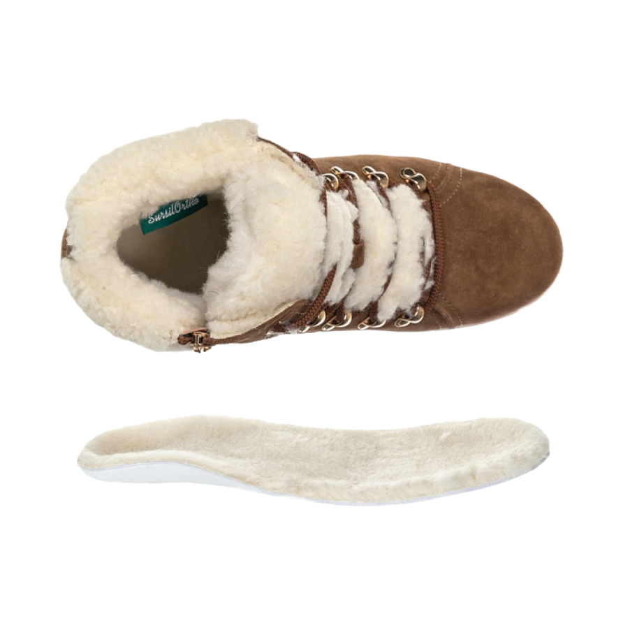 Женские зимние ортопедические ботинки Sursil-Ortho 65-2402-2 - ботинки для профилактики и коррекции плоскостопия. Зимняя модель из натуральной кожи отлично подойдет для холодной погоды. Профилактическая обувь рекомендована людям, имеющим деформации переднего отдела стопы (вальгусная деформация большого пальца, молоткообразная деформация). Плотный удлиненный формоустойчивый задник стабилизирует стопу, облегчая процесс ходьбы. Съемная ортопедическая стелька с супинатором с покрытием из натуральной шерсти поддерживает своды стопы и распределяет нагрузку на суставы. Подкладка с натуральной шерстью удерживает тепло внутри. Не скользящая подошва из резины поглощает ударные нагрузки и делает модель устойчивой и безопасной.
