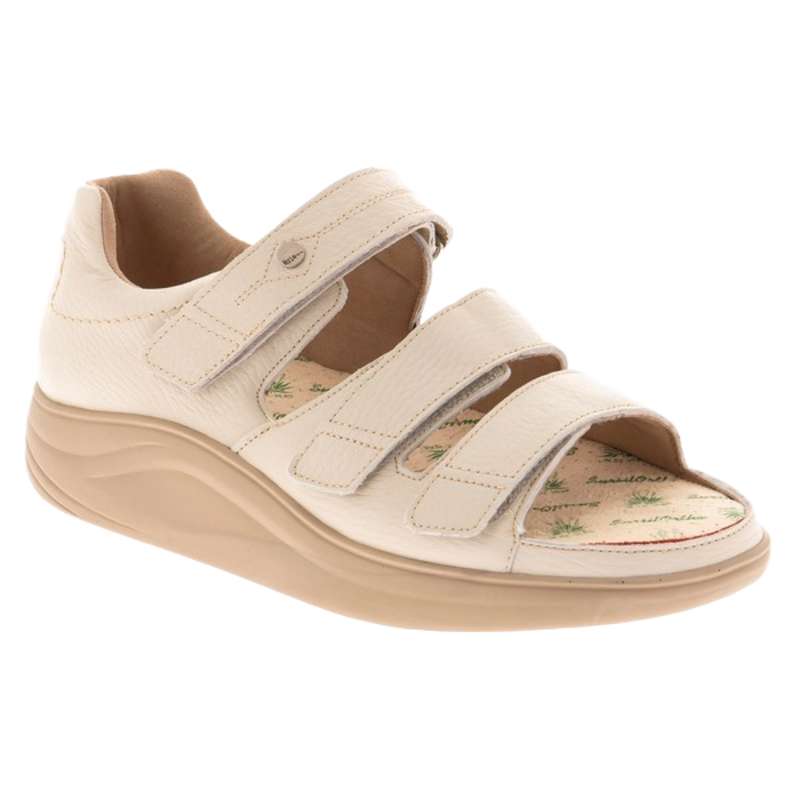 Диабетические ортопедические сандалии Sursil-Ortho. Повседневные летние сандалии с увеличенной полнотой 11. Модель может использоваться при синдроме диабетической стопы и для чувствительных стоп. Верх модели выполнен из натуральной кожи. Внутренняя бесшовная подкладка исключает натирание, а специальный мягкий подносок предотвращает возникновения мозолей. Съемная стелька с покрытием из микрофибры с Алоэ вера, обладающим бактерицидными и абсорбирующими свойствами. Нескользящая перекатная подошва ПУ поглощает ударные нагрузки, обеспечивает естественную работу мышц и формирует правильную биомеханику шага. Липучки Velcro для максимальной раскрываемости обуви и легкости надевания.Характеристики: